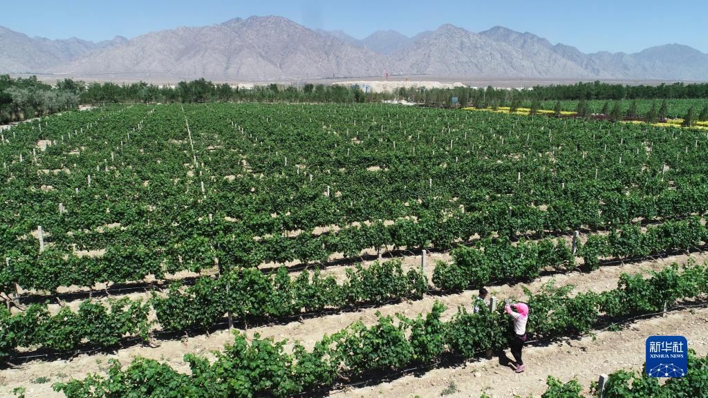 “賀蘭山下果園成,塞北江南舊有名。”夏日的賀蘭山東麓,翠綠的葡萄園沿山勢(shì)綿延南北,一眼望不到頭。