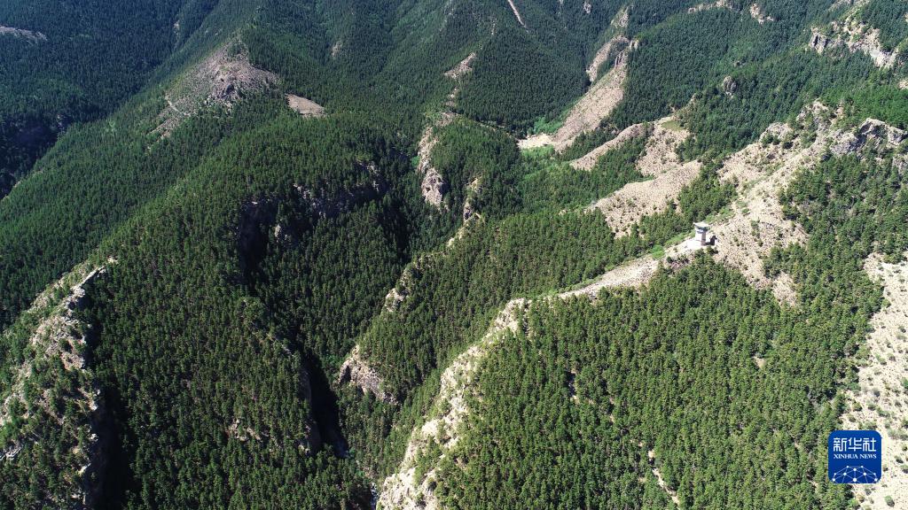 這是綠意盎然的賀蘭山蘇峪口國(guó)家森林公園(無(wú)人機(jī)照片,6月14日攝)。新華社記者 王鵬 攝