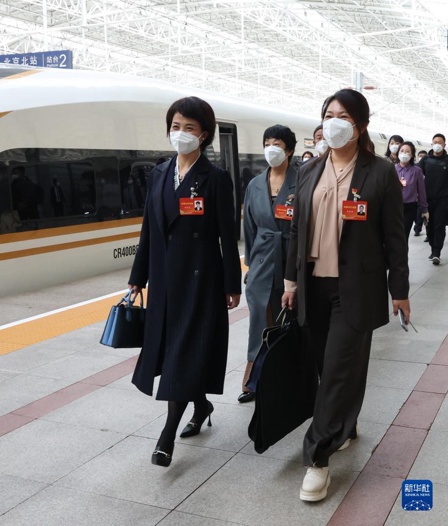 10月13日,來自內(nèi)蒙古自治區(qū)的黨的二十大代表乘高鐵抵達北京北站。新華社記者 張玉薇 攝