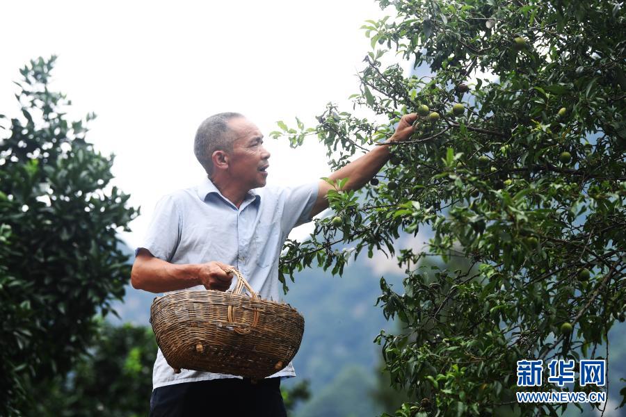 毛相林在采摘脆李(2020年7月3日攝)。新華社記者 王全超 攝