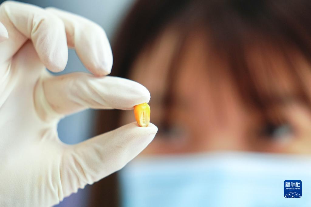 在吉林省宏澤現(xiàn)代農(nóng)業(yè)有限公司實(shí)驗(yàn)室內(nèi),科研人員展示培育的玉米種子(2022年6月7日攝)。 新華社記者 許暢 攝