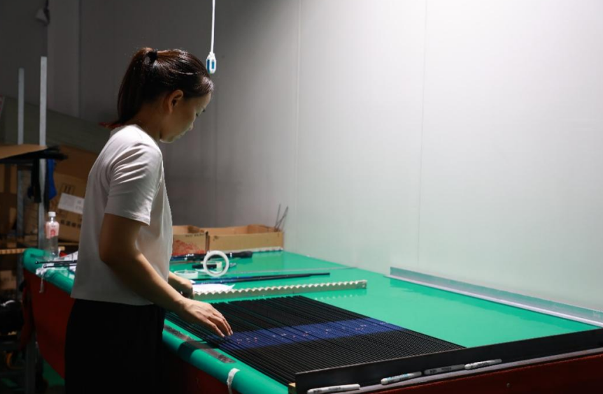 ▲釣具生產(chǎn)的大部分環(huán)節(jié)仍為手工完成,工人正在對(duì)竿節(jié)進(jìn)行質(zhì)檢。
