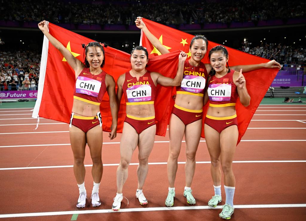 新華社杭州10月3日電(記者李典、黃垚、陳晨)3日舉行的杭州亞運(yùn)會(huì)田徑比賽產(chǎn)生10個(gè)項(xiàng)目金牌。中國隊(duì)在男、女4X100米接力中包攬冠軍,巴林名將阿德科亞打破女子400米欄賽會(huì)紀(jì)錄奪冠,成為本屆亞運(yùn)會(huì)“三金王”。