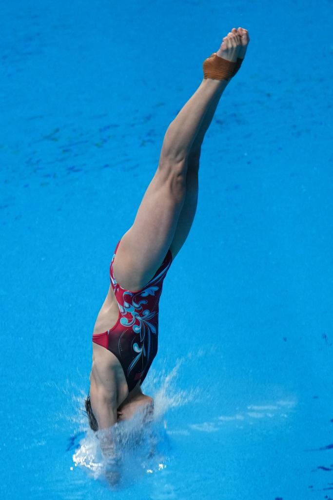 10月3日,中國(guó)選手全紅嬋在決賽中。新華社記者杜宇攝