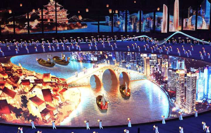 9月23日,演員在杭州亞運(yùn)會開幕式上表演。新華社記者 楊磊 攝