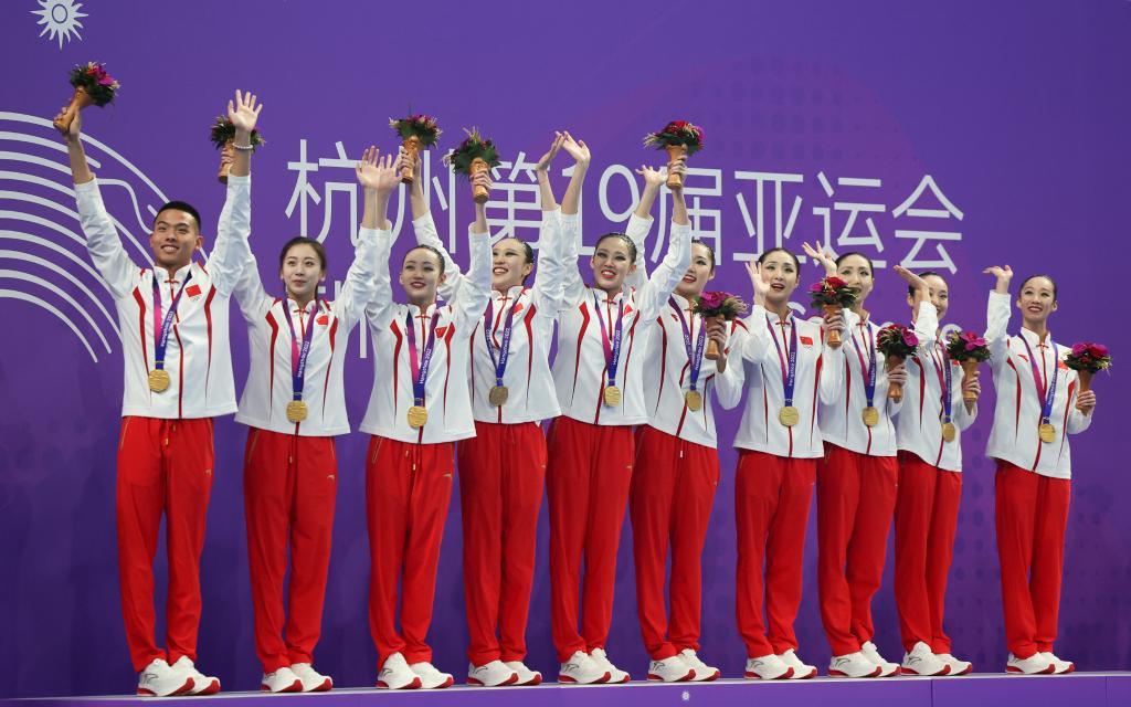 10月8日臨近中午,當(dāng)花樣游泳集體自由自選最后一組分?jǐn)?shù)亮出,中國隊(duì)的姑娘們歡呼、擁抱——她們讓中國代表團(tuán)本屆亞運(yùn)會(huì)的金牌總數(shù)定格在201塊,創(chuàng)下新的歷史紀(jì)錄。