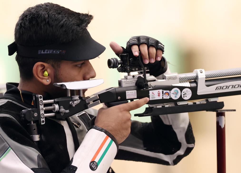 9月25日上午,三名印度槍手在男子10米氣步槍資格賽中表現(xiàn)穩(wěn)健,三人總成績達(dá)到1893.7環(huán),把該項(xiàng)目團(tuán)體世界紀(jì)錄提升了0.4環(huán)。這是杭州亞運(yùn)會(huì)誕生的第一個(gè)世界紀(jì)錄。僅僅一個(gè)小時(shí)后,中國小將盛李豪又以253.3環(huán)的成績創(chuàng)造了該項(xiàng)目個(gè)人決賽新的世界紀(jì)錄。