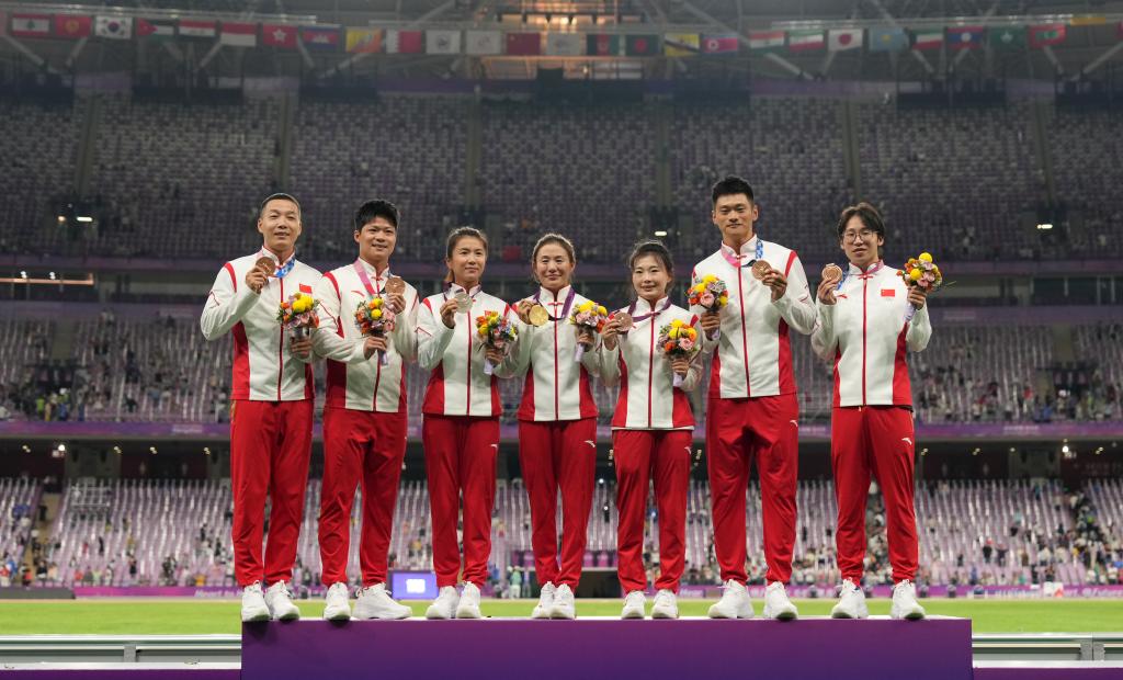 10月4日晚,杭州奧林匹克體育中心體育場迎來歷史性的一刻,中國男子4X100米接力隊(duì)的四名成員蘇炳添、謝震業(yè)、吳智強(qiáng)和湯星強(qiáng),以及三名競走女將切陽什姐、劉虹和呂秀芝先后站上領(lǐng)獎(jiǎng)臺,獲得各自等待已久的奧運(yùn)會(huì)獎(jiǎng)牌。