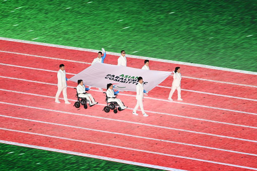 10月22日,亞殘奧委員會會旗在開幕式上入場。新華社記者李賀 攝
