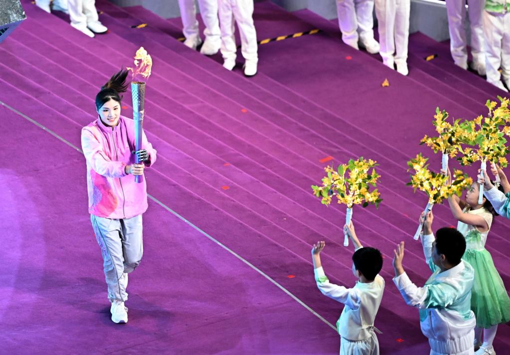 10月22日,最后一棒火炬手徐佳玲在開幕式上。新華社記者貝赫攝