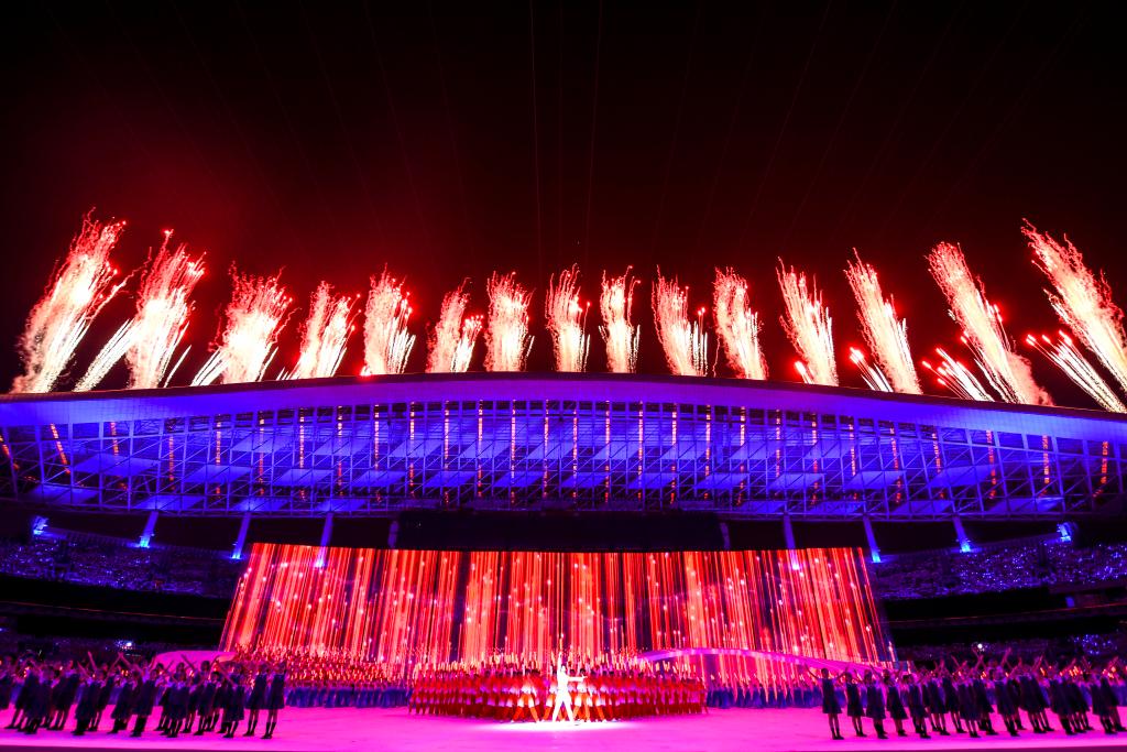 11月5日,第一屆全國學(xué)生(青年)運動會主火炬點燃。新華社記者 曹祎銘 攝