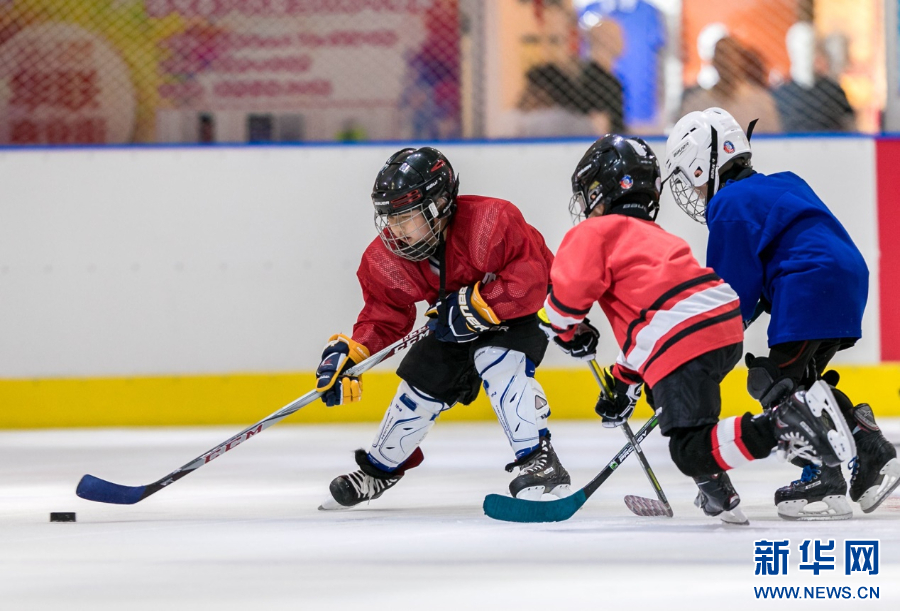 1月13日,小朋友在呼和浩特市玉泉區(qū)奧星冰場練習冰球。新華網(wǎng)發(fā)(丁根厚 攝)