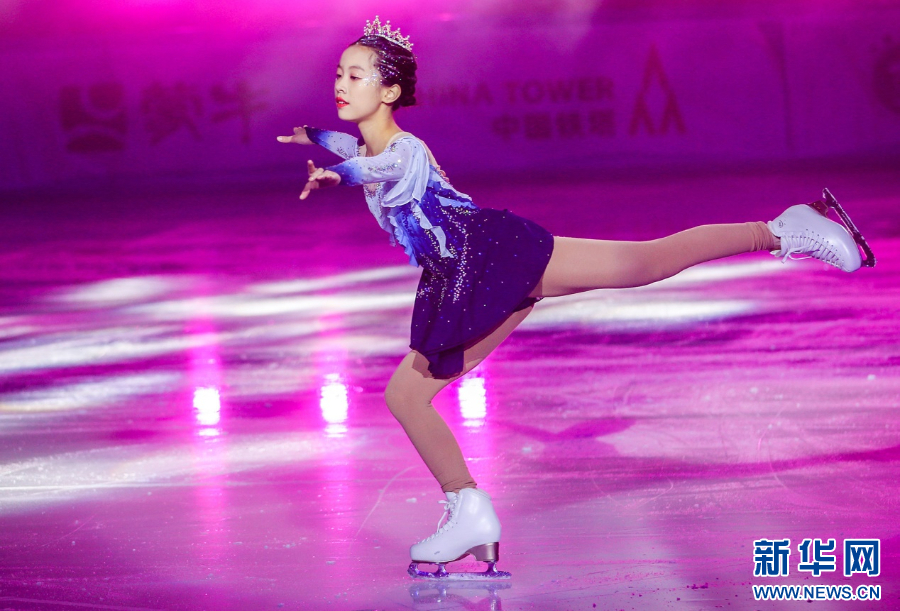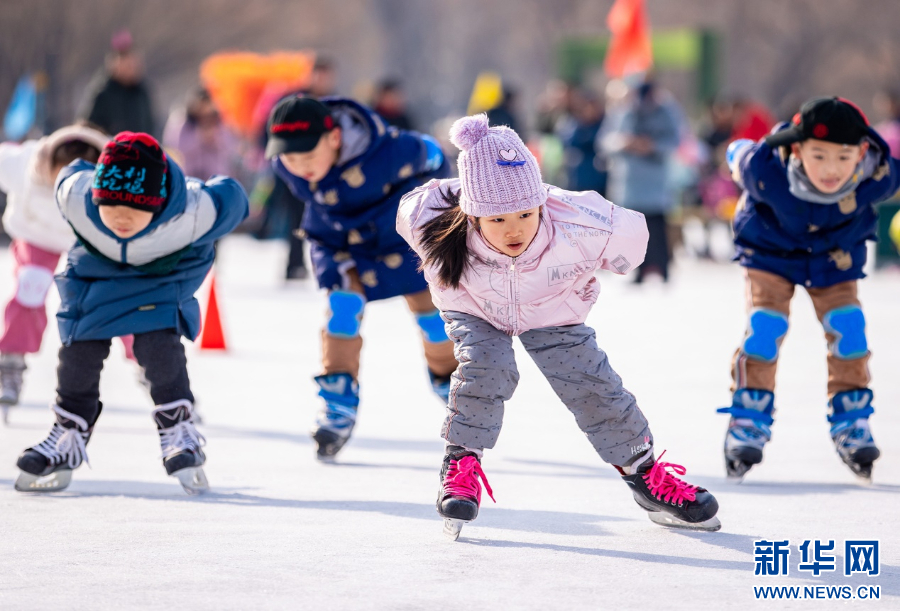 2023年11月11日,小朋友在呼和浩特市喜迎“十四冬”冰雪惠民主題活動活動上表演。新華網(wǎng)發(fā)(丁根厚 攝)