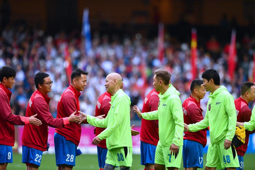 2023年11月12日,“村超”聯(lián)隊(duì)受邀赴港,與香港明星足球隊(duì)交流比賽。新華社記者 陳鐸 攝