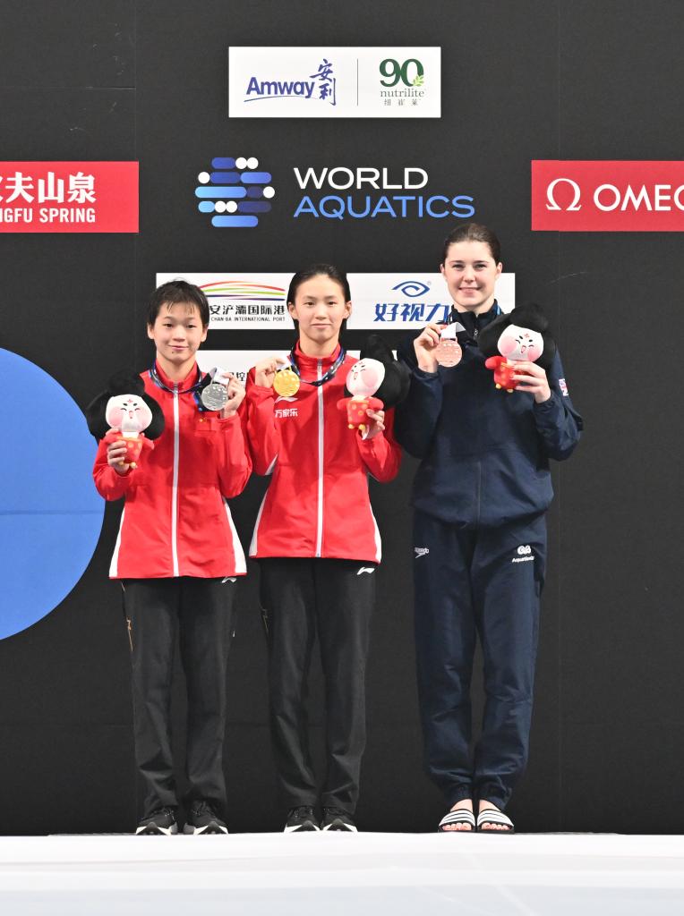 當日還進行了男子10米臺決賽,世錦賽該項目冠軍、中國選手楊昊在身體不適的情況下仍然一路領先,最終以557.60分奪冠。日本選手玉井陸斗摘銀,第三名是墨西哥選手巴爾德斯。