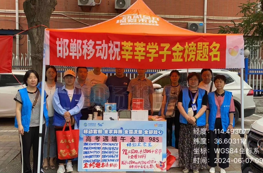 高考首日,中國(guó)移動(dòng)河北邯鄲分公司在各營(yíng)業(yè)廳、各考點(diǎn)設(shè)置“‘心級(jí)服務(wù),護(hù)航高考”服務(wù)站,為打造平安高考、暖心高考貢獻(xiàn)企業(yè)力量。
