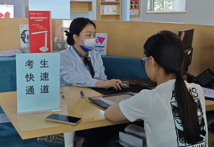 營(yíng)業(yè)廳為高考學(xué)子及家長(zhǎng)開通快速綠色服務(wù)通道,高考前后為考生及家長(zhǎng)提供業(yè)務(wù)辦理快捷服務(wù)。此外,營(yíng)業(yè)廳還免費(fèi)提供飲用水、防暑藥品、應(yīng)急充電、免費(fèi)WIFI等服務(wù),為助力高考提供暖心服務(wù)。