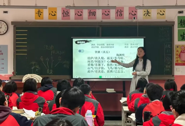活動中,崔玲玲老師帶領(lǐng)八年級13班同學開展了一堂八年級上冊古詩新授課。課堂上崔老師語言簡煉、清晰,善于創(chuàng)設(shè)情境和借助課件,學生的積極性很高,善于表達,積極舉手發(fā)言,回答問題自信,營造出輕松、愉悅的學習氛圍。