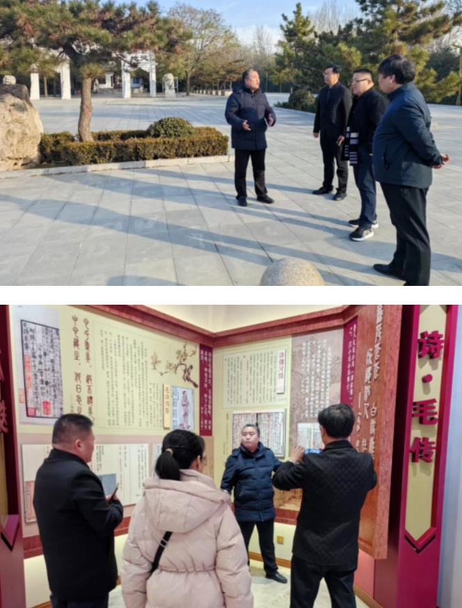 11月29日,鄭州四十七高中圖書館長(zhǎng)、詩經(jīng)文化教育專家崔晟、衡水市饒陽縣詩經(jīng)風(fēng)物展覽館館長(zhǎng)邢章群一行到雞澤縣考察學(xué)習(xí)詩經(jīng)文化建設(shè)情況,縣委宣傳部常務(wù)副部長(zhǎng)穆海英、宣傳部副部長(zhǎng)尹歡宇、融媒體中心副主任王榮安、詩經(jīng)和成語文化研究會(huì)會(huì)長(zhǎng)曹勤學(xué)全程進(jìn)行了陪同與對(duì)接。