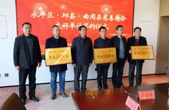 儀式現(xiàn)場(chǎng),李啟洲發(fā)表致辭,對(duì)三地慈善總會(huì)達(dá)成合作、簽約“慈善友好單位”表示熱烈祝賀,展望了區(qū)域慈善協(xié)同發(fā)展的廣闊前景。隨后,永年區(qū)慈善總會(huì)會(huì)長(zhǎng)李玉昌、邱縣慈善總會(huì)會(huì)長(zhǎng)王基武、曲周縣慈善總會(huì)會(huì)長(zhǎng)關(guān)忠信共同簽署合作協(xié)議,三方代表攜手合影,定格這一重要時(shí)刻。邯鄲市慈善總會(huì)會(huì)長(zhǎng)潘利軍、永年區(qū)人大常委會(huì)主任鄭佩山等領(lǐng)導(dǎo)為三地慈善總會(huì)頒發(fā)“慈善友好單位”牌匾;潘利軍還與邯鄲市慈善總會(huì)副會(huì)長(zhǎng)劉青等一同為三地慈善總會(huì)會(huì)長(zhǎng)頒發(fā)榮譽(yù)牌匾,以表彰其在公益事業(yè)中的積極貢獻(xiàn)。