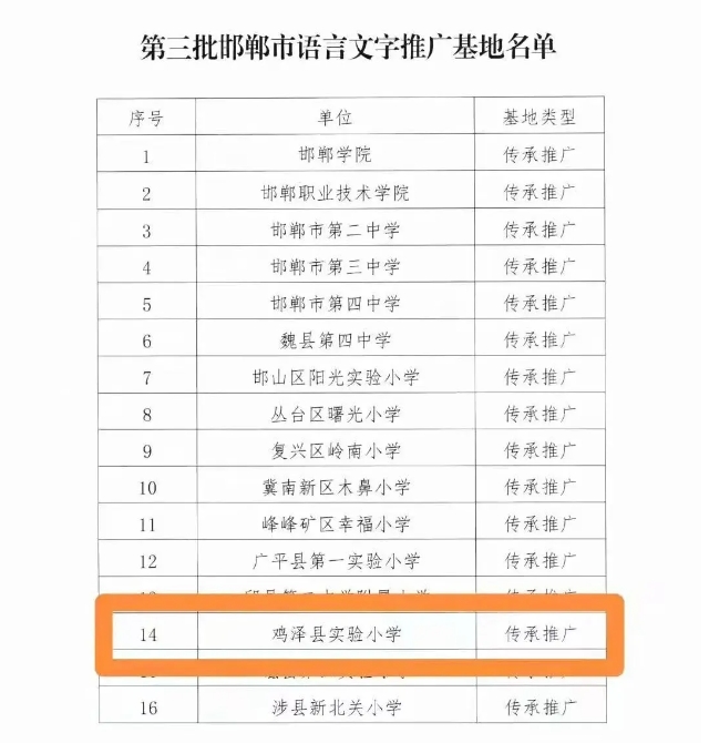 近日,邯鄲市教育局印發(fā)了《關(guān)于公布第三批邯鄲市語言文字推廣基地名單的通知》,雞澤縣實驗小學被評為第三批邯鄲市語言文字推廣基地。此次評選是由邯鄲市教育局和邯鄲市語言文字工作委員會共同舉辦,雞澤縣實驗小學通過單位申報、專家評審、實地考察、綜合評議等程序成功獲評。李鐵 李現(xiàn)海 齊迷芹