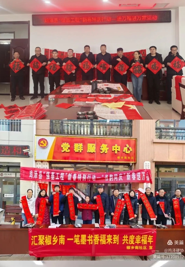為弘揚中華優(yōu)秀傳統(tǒng)文化,營造喜慶祥和的春節(jié)氛圍,由雞澤縣委宣傳部、雞澤縣文聯(lián)、雞澤縣文明辦主辦的雞澤縣強基工程新春特別行動——“書韻同慶”送萬福進萬家文化惠民公益活動,在雙塔鎮(zhèn)東雙塔村、春華新府小區(qū)、椒鄉(xiāng)北社區(qū)、椒鄉(xiāng)南社區(qū)、會盟南社區(qū)、開發(fā)區(qū)等地開展,同時還開展了“我要你來寫”線上征集活動,縣書法愛好者將為您書寫后送到群眾家中?;顒邮艿饺罕姷臒崃覛g迎,為新春的到來增添了一抹別樣的年味。