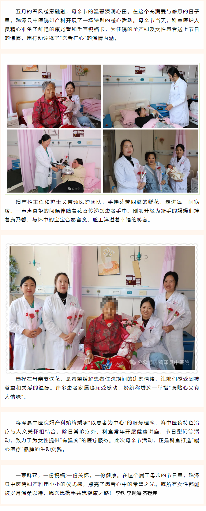 溫情母親節(jié),感恩送祝?!u澤縣中醫(yī)院婦產(chǎn)科為住院患者獻花表關(guān)懷
