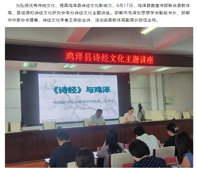 雞澤縣舉辦詩經(jīng)文化主題講座:解碼千年文脈,賦能教育傳承