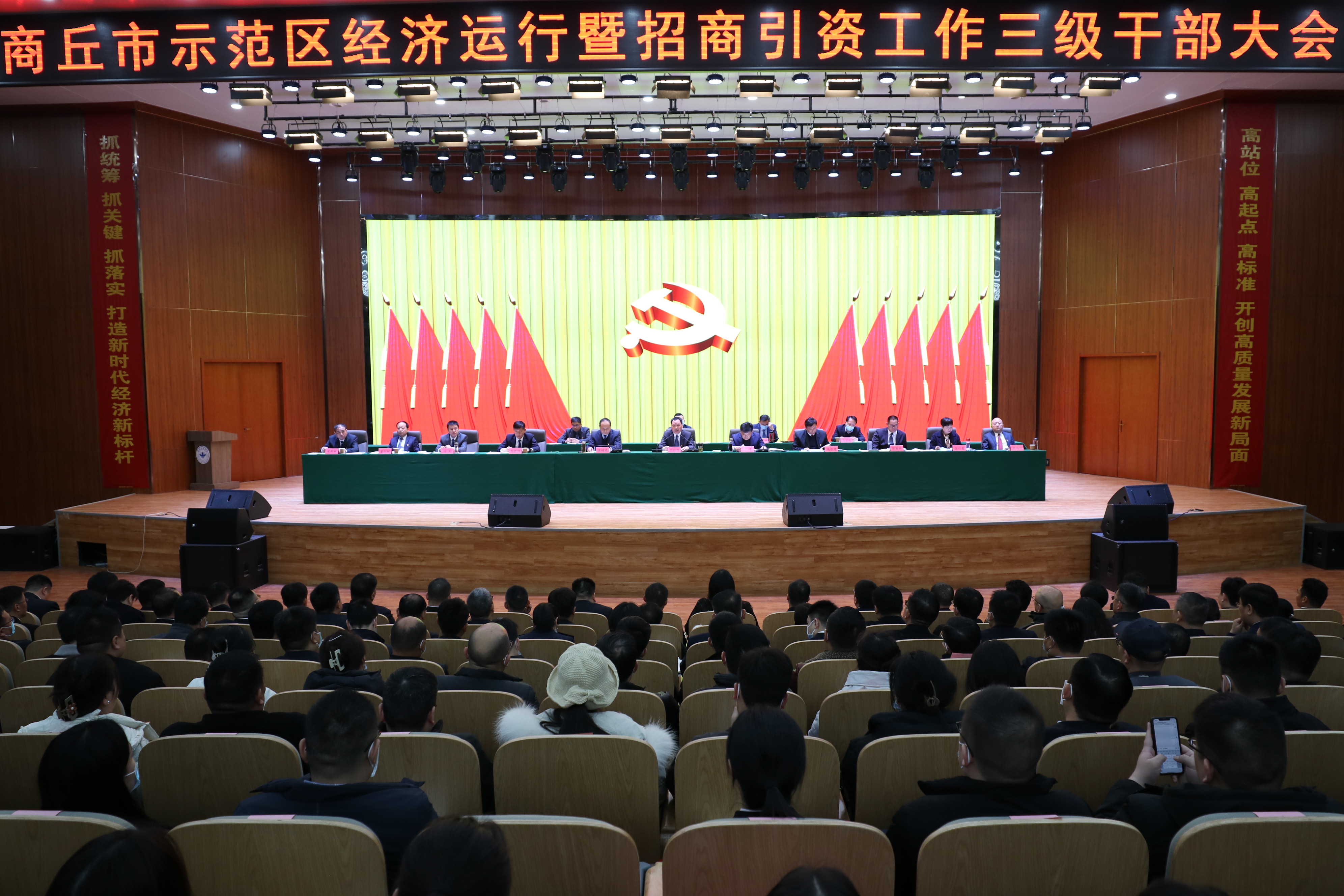 2月21日上午,商丘市示范區(qū)召開經(jīng)濟運行暨招商引資三級干部大會,總結(jié)2022年經(jīng)濟工作,對經(jīng)濟運行先進集體和個人進行表彰,動員全區(qū)上下為建設綜合實力更強、發(fā)展動能更足、民生改善更優(yōu)的高質(zhì)量示范區(qū)而不懈奮斗。示范區(qū)黨工委書記、商丘經(jīng)濟技術開發(fā)區(qū)黨工委副書記王新勝,示范區(qū)黨工委副書記、管委會主任、商丘經(jīng)濟技術開發(fā)區(qū)黨工委副書記、管委會主任張峰,示范區(qū)領導王碩東、馮書建、喬敬偉、張留雁、馮新、張紅霞、童紅標、韓向迎、吳新林出席會議。