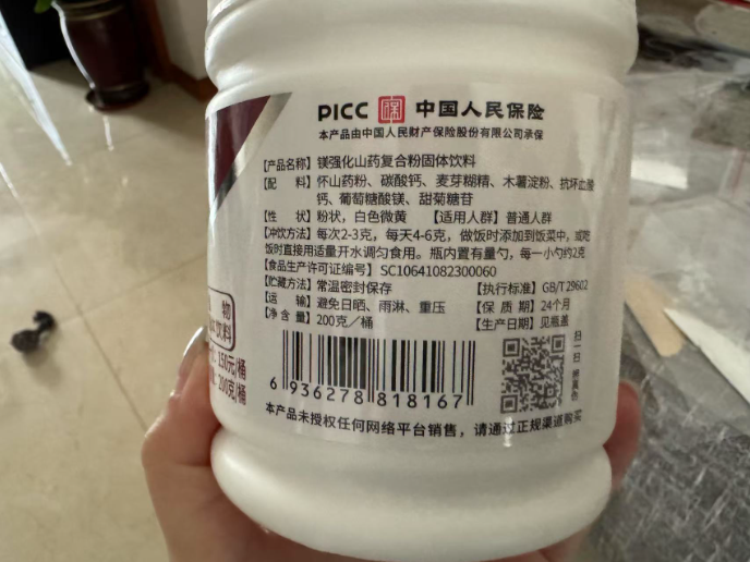 伍福家園所售鎂強(qiáng)化山藥復(fù)合粉固體飲料。受訪者供圖