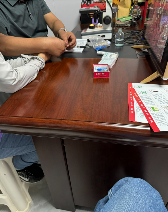 被“一滴血檢測健康”吸引來的,還有家住江蘇鹽城的劉華(化名)。最近幾年劉華正處于更年期,睡眠一直不好,自己的一個小姐妹給她介紹了伍福家園的產(chǎn)品,并表示這跟其他產(chǎn)品不一樣,是食療。2024年9月,劉華和親戚驅(qū)車來到位于無錫市惠山區(qū)陽山鎮(zhèn)的一處公寓內(nèi),這里是伍福家園的一個“站點(diǎn)”。“里面有一位‘孫老師’是這次活動的主要執(zhí)行者,由他本人進(jìn)行一滴血檢測”,一同前去的劉華的女兒鄒瑜(化名)告訴記者,這位“孫老師”自稱為當(dāng)?shù)啬持嗅t(yī)院??漆t(yī)生,由他進(jìn)行診斷,并開具方案。