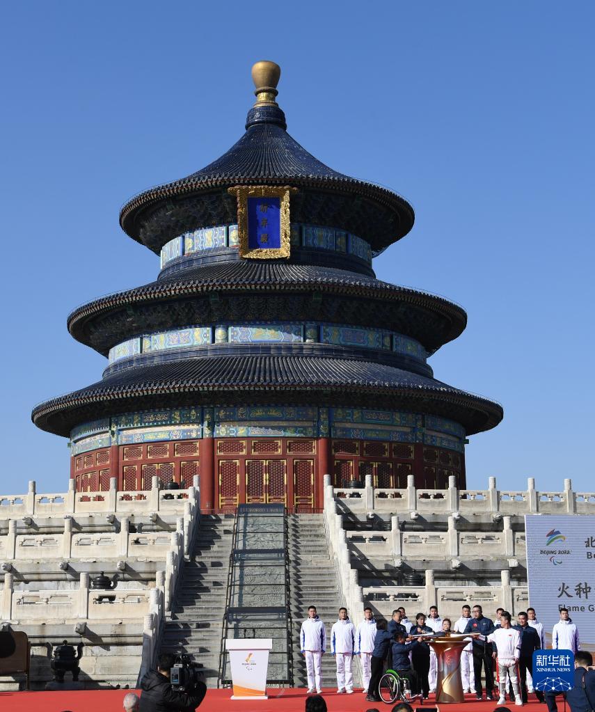當(dāng)日,北京2022年冬殘奧會火種匯集儀式在天壇公園舉行。在北京、延慶、張家口三個(gè)賽區(qū)采集的8個(gè)火種,連同在英國曼德維爾采集的火種,共9個(gè)火種匯聚生成北京2022年冬殘奧會官方火種。儀式后進(jìn)行了以“九天之火”為主題的天壇公園火炬?zhèn)鬟f。