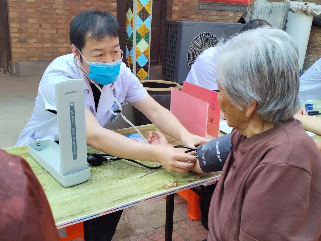 活動(dòng)現(xiàn)場(chǎng),中醫(yī)科主任史記增、東院康復(fù)科主任許國(guó)杰、高血壓中心主任李樹臣、神經(jīng)外科副主任張善輝等醫(yī)護(hù)志愿者,為村民提供全方位健康診療服務(wù)。專家們耐心詢問村民病史,細(xì)致開展把脈問診、心肺聽診、血壓血糖檢測(cè)等項(xiàng)目,針對(duì)頸肩腰腿疼痛等常見病進(jìn)行現(xiàn)場(chǎng)手法治療,并結(jié)合個(gè)體情況指導(dǎo)慢性病患者科學(xué)用藥。