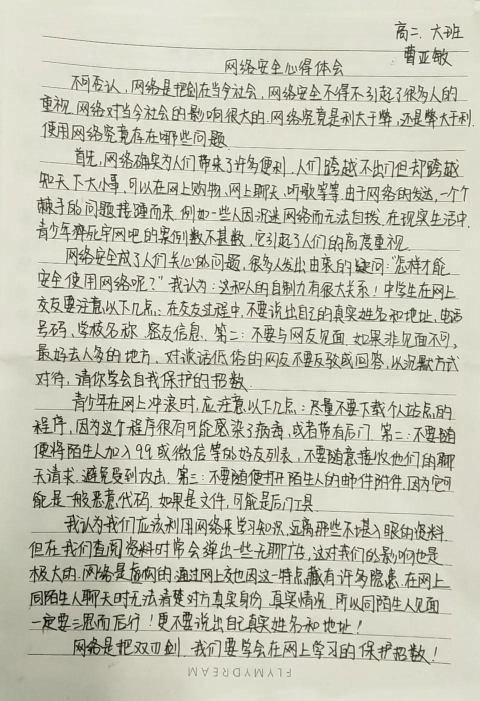 各學(xué)校組織學(xué)生進(jìn)行網(wǎng)絡(luò)安全征文比賽。通過征文比賽,進(jìn)一步教育引導(dǎo)學(xué)生掌握網(wǎng)絡(luò)安全知識,遠(yuǎn)離網(wǎng)絡(luò)沉迷,促進(jìn)學(xué)生健康成長。