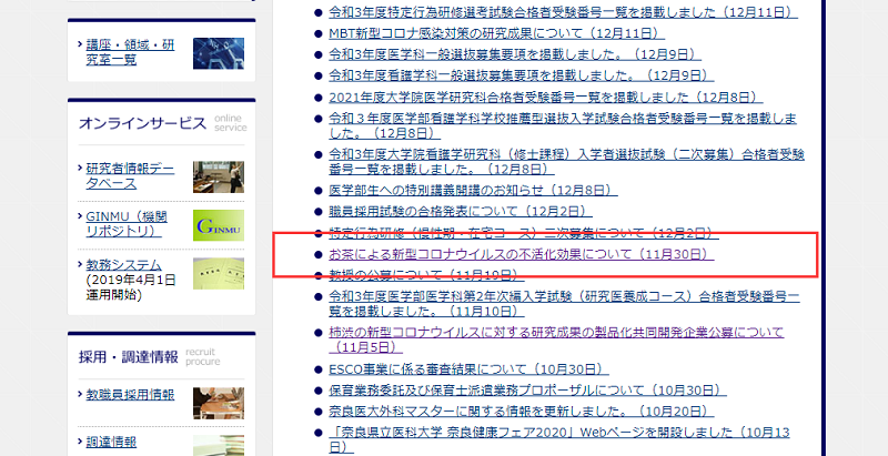 網(wǎng)傳的這項(xiàng)研究,指的是日本奈良縣立醫(yī)科大學(xué)2020年11月30日發(fā)布的一篇文章,提及醫(yī)學(xué)??频奈⑸锔腥景Y學(xué)教授矢野壽一帶領(lǐng)的研究小組對(duì)“不同茶對(duì)新型冠狀病毒的滅活效果”研究。