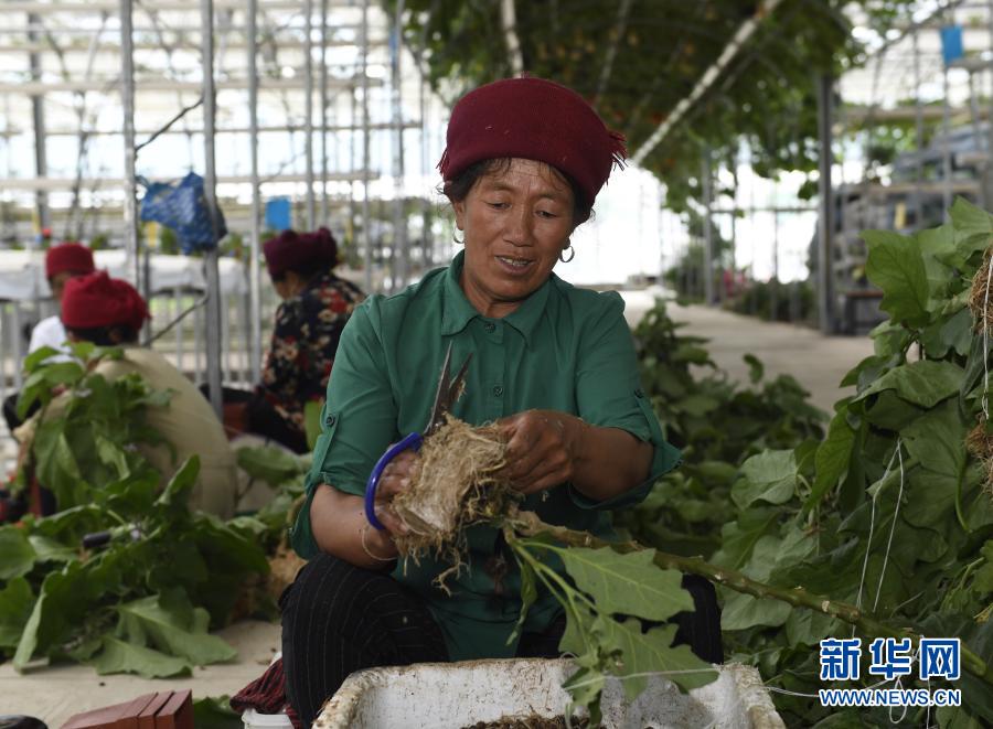 8月10日,四川省涼山彝族自治州昭覺(jué)縣四開鄉(xiāng)好谷村的阿爾衣呷在家附近的涪昭現(xiàn)代農(nóng)業(yè)產(chǎn)業(yè)園內(nèi)務(wù)工。新華社記者 劉坤 攝