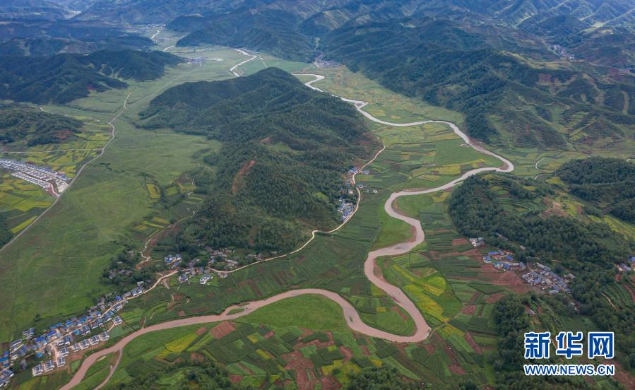 金陽(yáng)縣熱柯覺(jué)鄉(xiāng)丙乙底村境內(nèi)蜿蜒盤旋的旅游道路(6月5日攝,無(wú)人機(jī)照片)。新華社記者 江宏景 攝