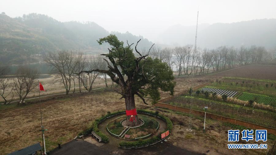 這是1月28日在湖南省張家界市慈利縣溪口鎮(zhèn)樟樹村拍攝的“紅軍樹”(無人機(jī)照片)。新華社記者 陳振海 攝
