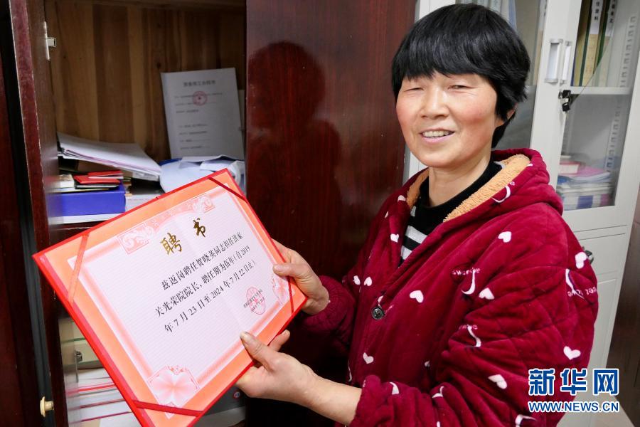 1月26日,湖南省張家界市桑植縣洪家關(guān)光榮院院長賀曉英展示“返聘證書”。30多年來,賀曉英服務(wù)過100多位革命老人。新華社記者 蘇曉洲 攝