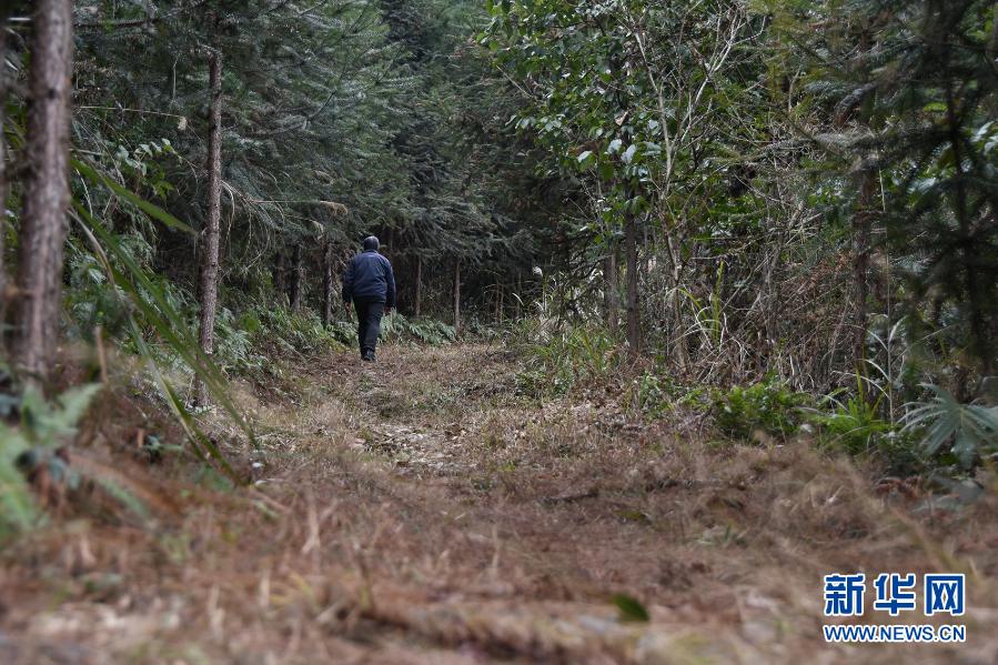 58歲的兵書閣村農(nóng)民吳澤文走在紅軍當(dāng)年走過的路上,這條名為“花界”的路如今還保留著當(dāng)年紅軍走過時(shí)的樣子(1月29日攝)。新華社記者 周勉 攝