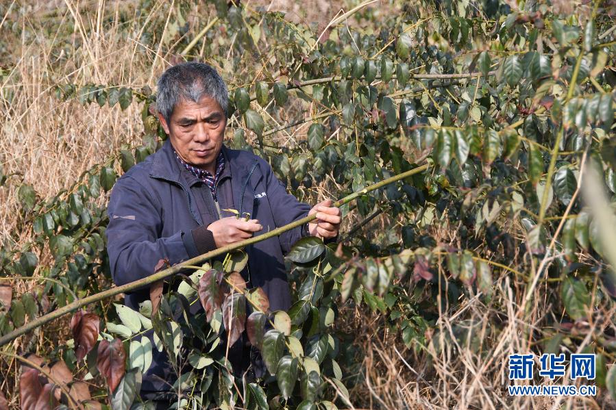 58歲的兵書閣村農(nóng)民吳澤文在打理自家的鉤藤(1月28日攝)。新華社記者 周勉 攝