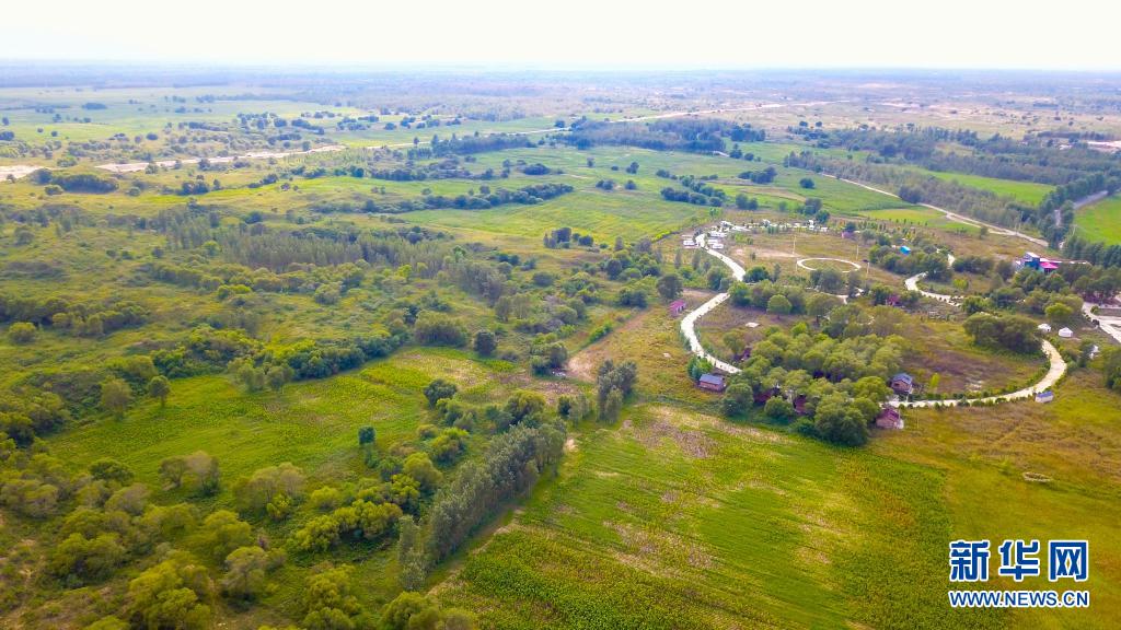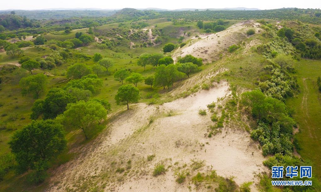 內(nèi)蒙古錫林郭勒盟正藍(lán)旗那日?qǐng)D蘇木高格斯臺(tái)嘎查周邊渾善達(dá)克沙地的治理情況(2020年6月6日攝,無(wú)人機(jī)照片)。新華社記者 彭源 攝