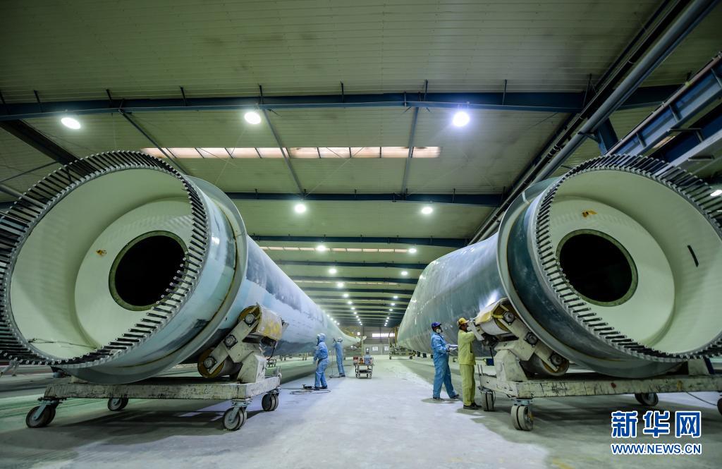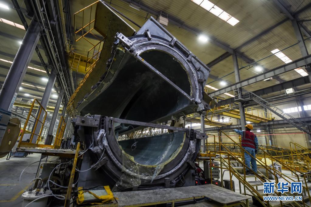 3月17日,在鄂爾多斯裝備制造工業(yè)園區(qū)內(nèi),一家新材料科技股份有限公司的工人在車間內(nèi)監(jiān)視風(fēng)葉合模過(guò)程。新華社記者 彭源 攝