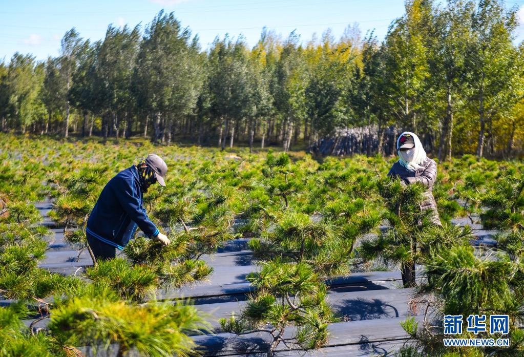 工作人員在內(nèi)蒙古錫林郭勒盟多倫縣的育苗基地內(nèi)工作(2020年9月18日攝)。新華社記者 彭源 攝