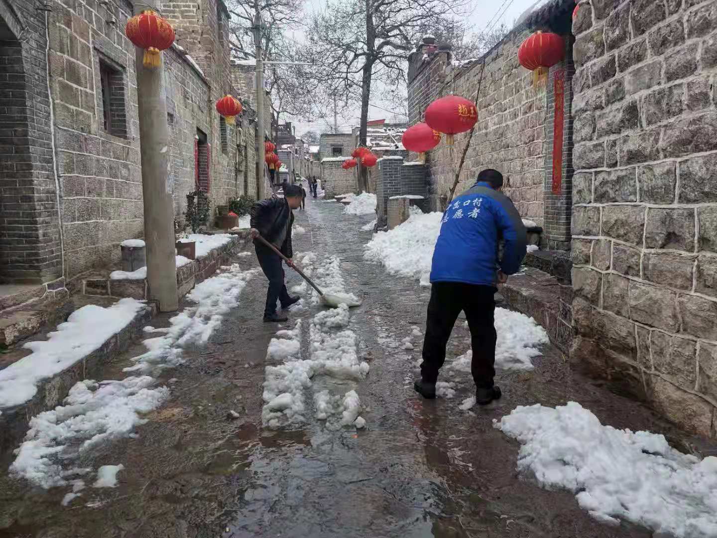 黨員志愿者清理雪后的村街道。趙吉亮攝