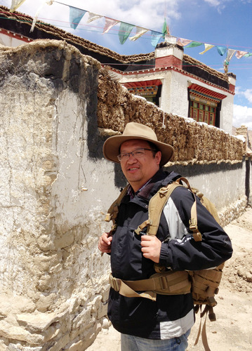 鐘揚在西藏日喀則進行植物采樣時留影。(新華社發(fā) 馮艾攝)