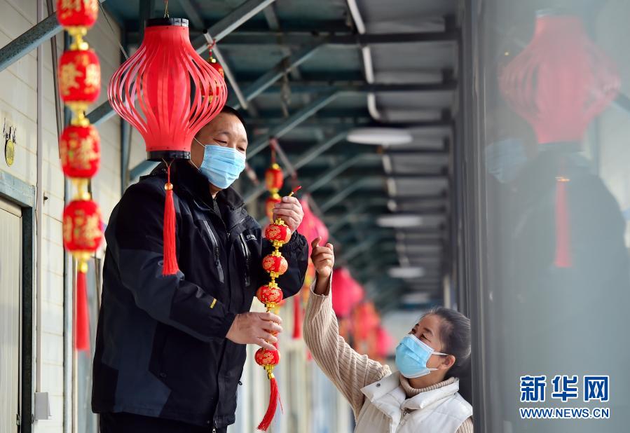 在石家莊市新華區(qū)新干線旅游集團(tuán)宿舍區(qū),不能回家過年的司機(jī)李平良(左一)裝扮宿舍,迎接新春佳節(jié)(2月5日攝)。新華社發(fā)(梁子棟 攝)