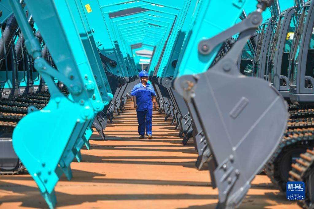在位于湖南長沙經開區(qū)的山河智能裝備股份有限公司,工作人員在檢查機械裝備(2022年7月1日攝)。新華社記者 陳澤國 攝