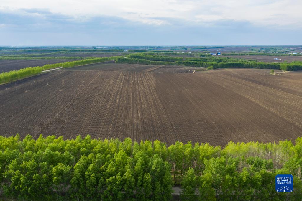 黑龍江省海倫市前進(jìn)鎮(zhèn)光榮村已完成播種的黑土耕地(2022年5月23日攝,無人機(jī)照片)。新華社記者 謝劍飛 攝