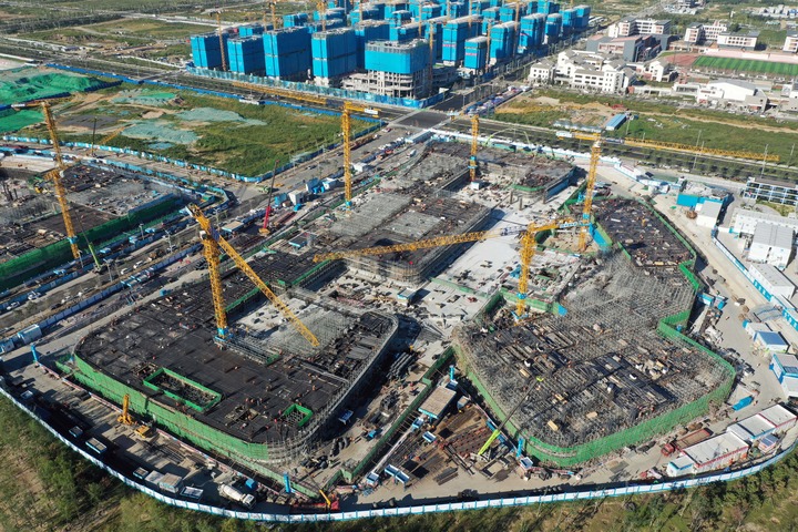 9月7日拍攝的雄安新區(qū)啟動(dòng)區(qū)中國星網(wǎng)雄安新區(qū)總部大樓建設(shè)施工現(xiàn)場(無人機(jī)照片)。新華社記者朱旭東攝